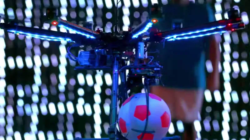 Utilizando um drone, tecnologia de projeção avançada e cerca de 30 mil luzes LEDs programáveis eles criaram o que denominaram “experiência de futebol como nenhuma outra”. Logo no começo do vídeo é possível ver o drone carregando uma bola de futebol, a qual posteriormente foi lançada ao chão, dando início ao jogo, com o pressionar de um botão remotamente. Adaptação que nos remete à notícia que girou o mundo na semana passada, o drone que foi adaptado para ser capaz de, com o pressionar de um botão, vandalizar um outdoor